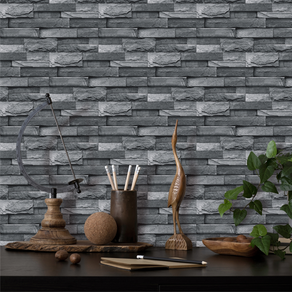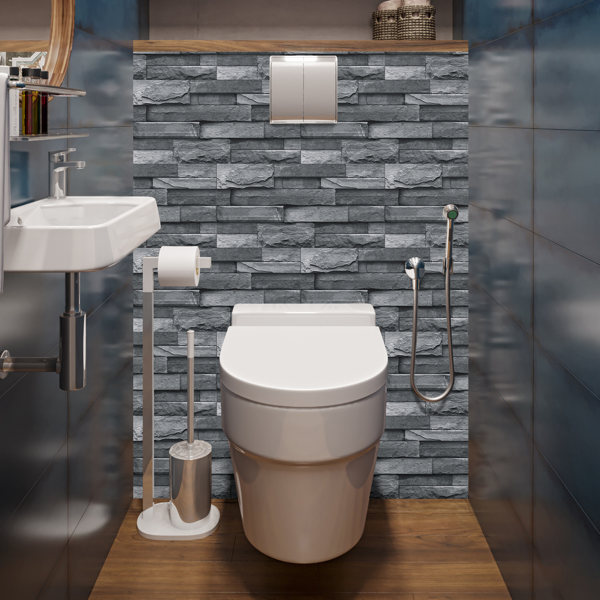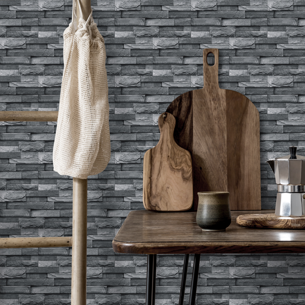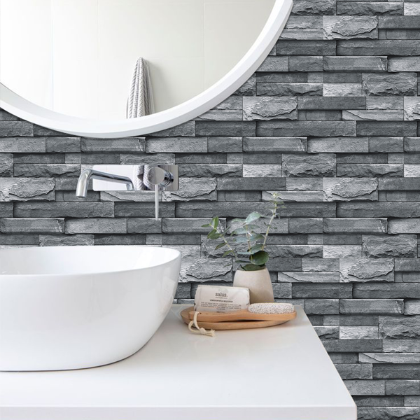 Light grey imitation stone tile wallpaper peel and stick waterproof bathroom wall decor