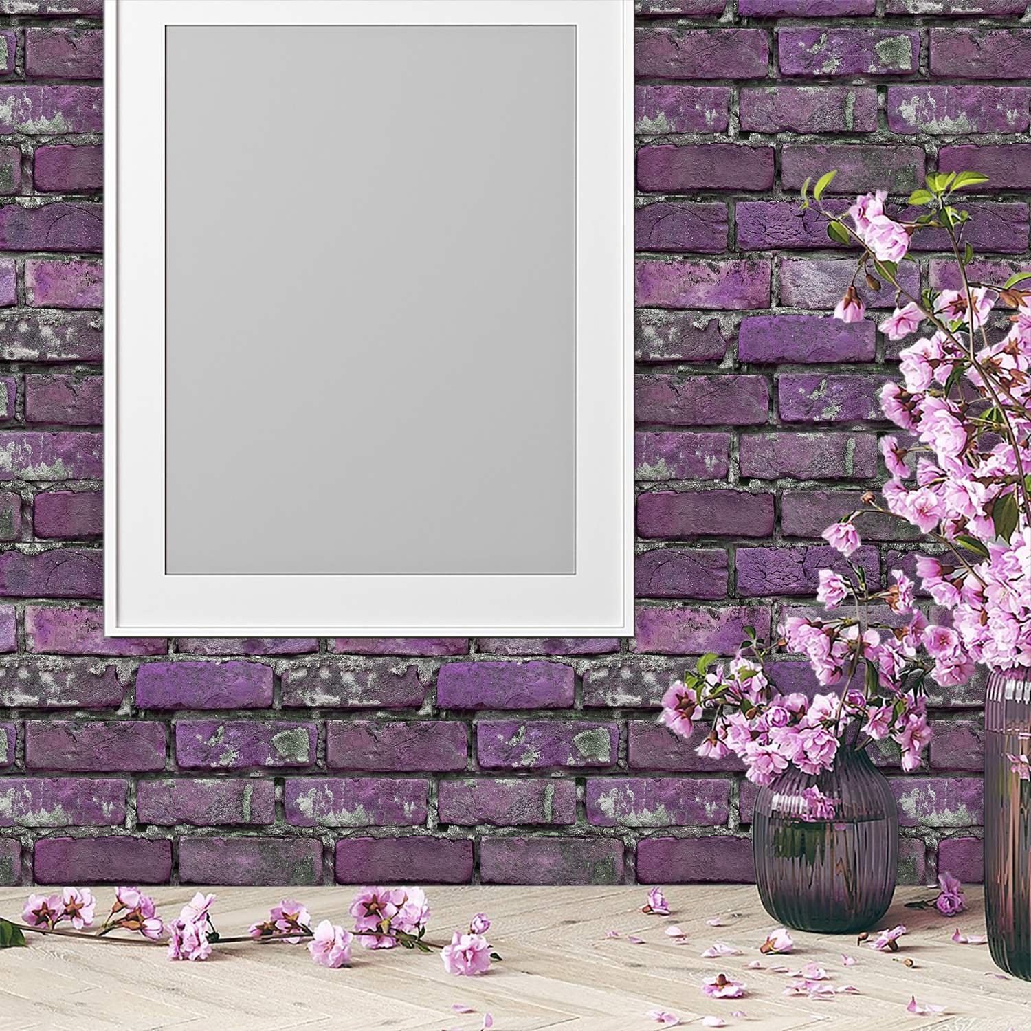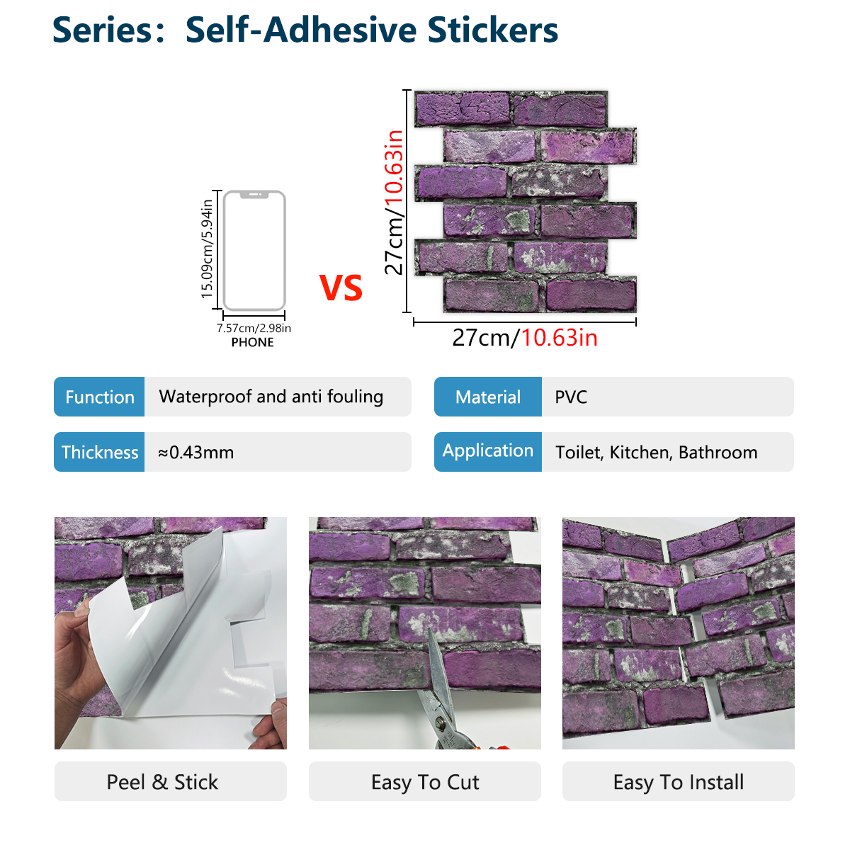 Purple peel and stick PVC brick wall tiles, waterproof self-adhesive for kitchen, bathroom, toilet decoration