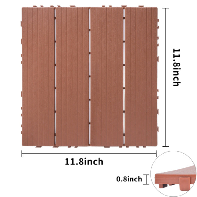 Product Name:Plastic Interlocking Deck Tiles, 11.8"x11.8"(Pack of 44 ), Patio Flooring Outdoor Waterproof All Weather Use for Garden Poolside Front/Back Yard, Mahogany Colour